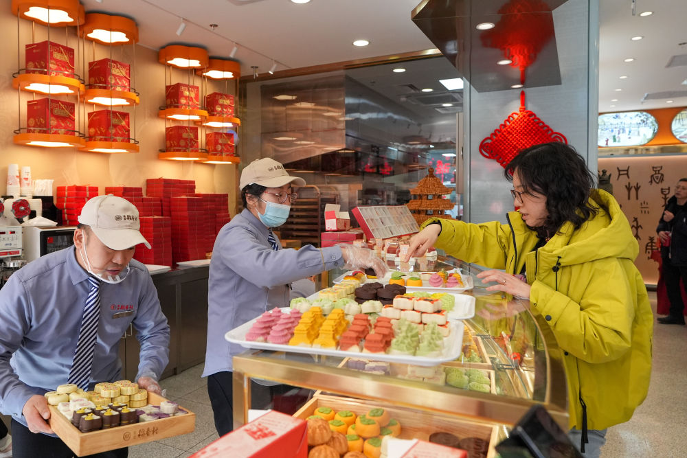 顾客在稻香村特色店选购商品。