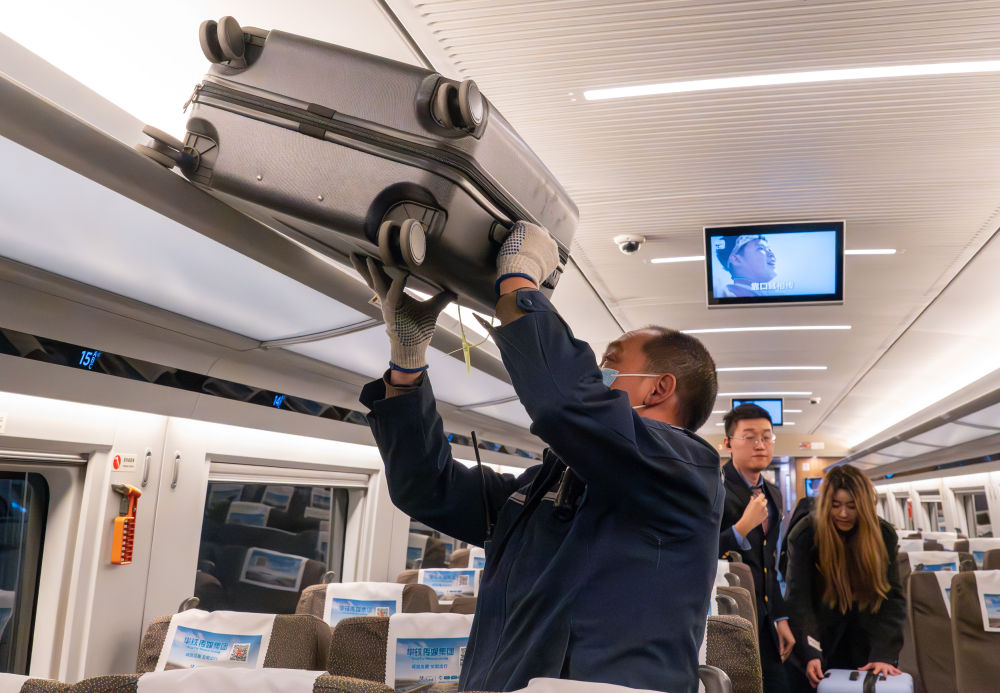 2026年2月2日,在湖北武汉汉口火车站,中铁快运服务人员在列车到站后拿取乘客的行李。今年春运,已购车票的旅客可以在铁路12306App、微信小程序上预约“轻装行”服务,有效减轻携带大件行李出行的负担。该服务自2025年6月开始施行,目前试点覆盖30座车站。