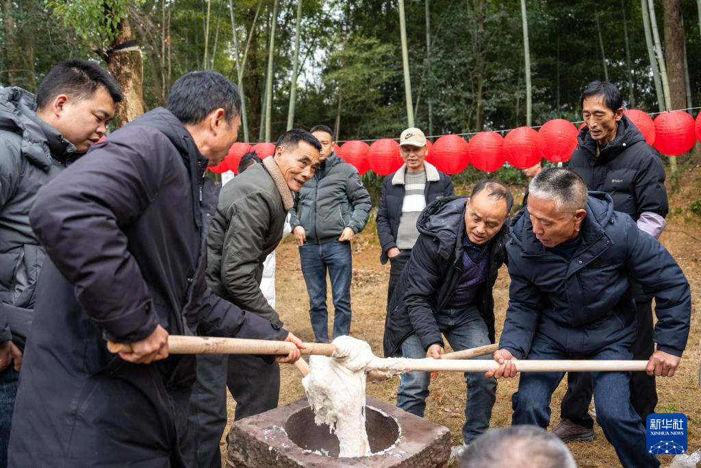 春节临近,“稻香欢喜年”迎新春活动在湖南省常德市鼎城区谢家铺镇港中坪村举行,村民们通过参加打糍粑大赛、写春联、拓年画等传统年俗活动迎接新春佳节。