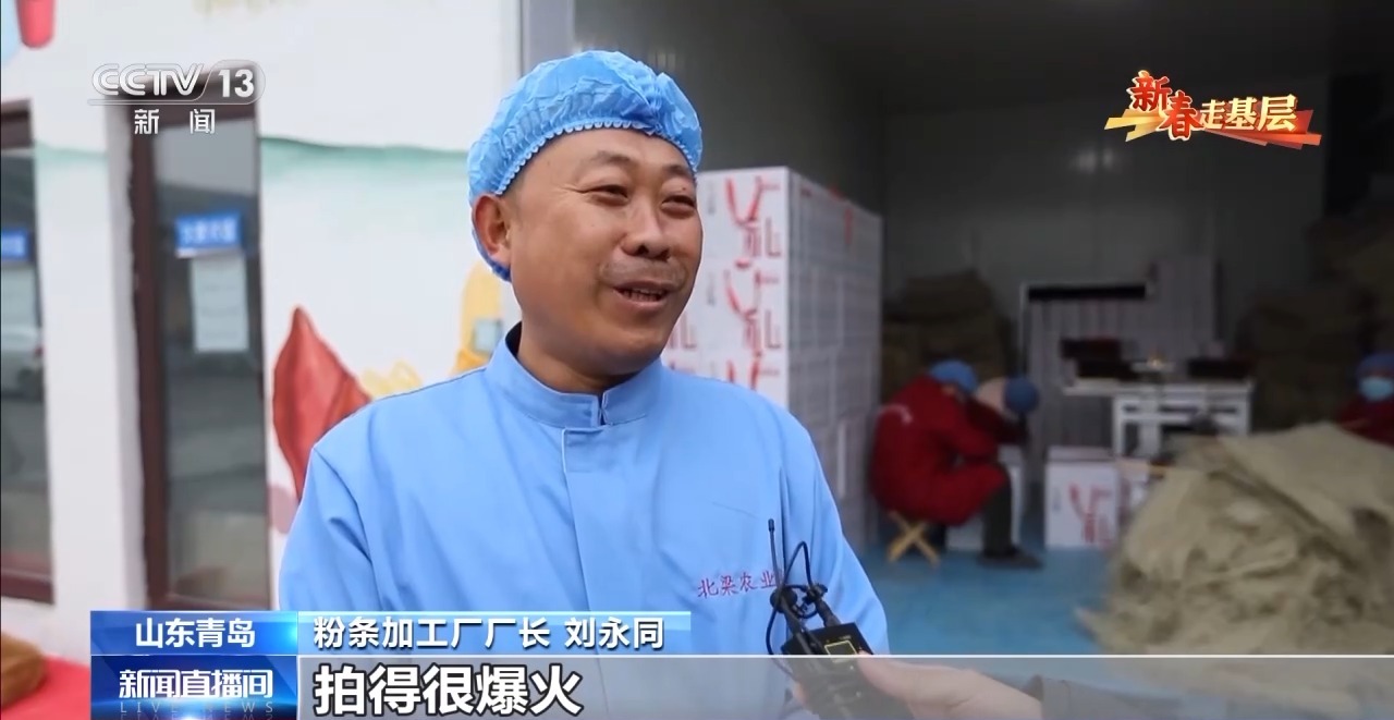 粉条加工厂厂长刘永同:在网上看到他们拍这个短视频,拍得很爆火,所以我们就想过来看一下,结果来了以后发现这边农产品很丰富,所以说我们就有了想法建厂。