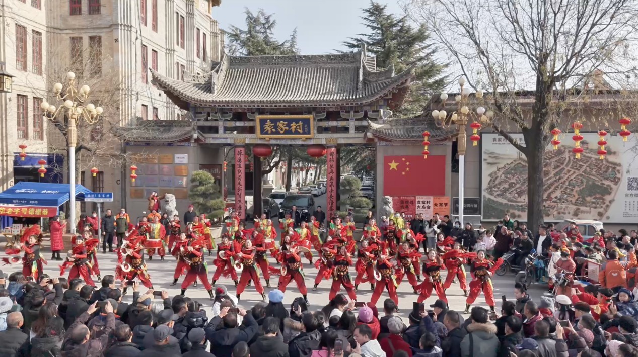 袁家村村委会副主任郭洪江:今年大年三十晚上,我们所有的村民、商户共同举办集体过大年。初一到十五,我们每一天都会表演我们当地的民俗活动,像我们的锣鼓、高跷、舞龙、舞狮,让来袁家村的游客感受到浓浓的年味。