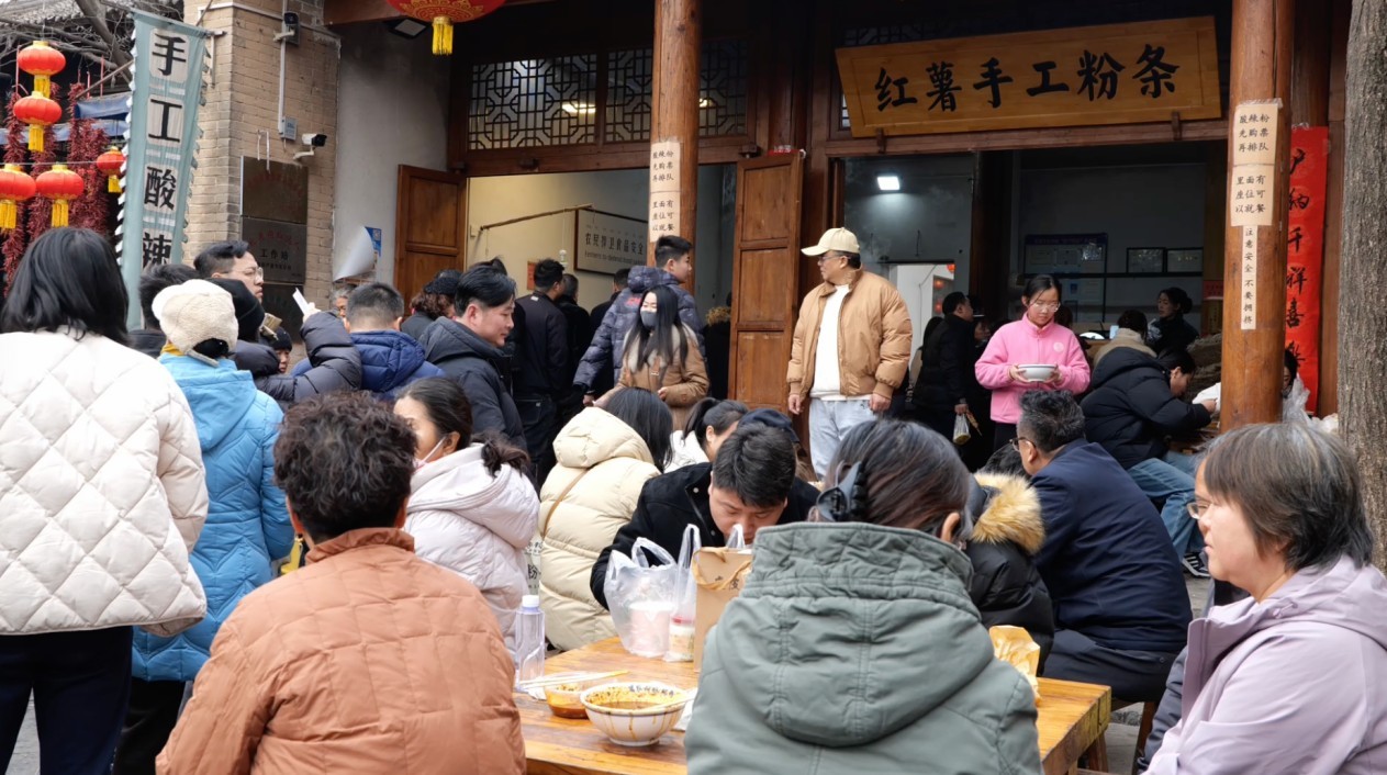记者:我现在所在的位置是陕西咸阳礼泉县的袁家村,还没进村,就被村口大集的热闹气氛所包围。这些年来,袁家村的游客接待量在陕西旅游景区一直是名列前茅的。去年春节期间,这里的旅游营收达到了1.8亿元,如此亮眼的数字、如此高的热度,这个村子的魅力究竟是什么呢?又快过春节了。今天,我们就一起到村子里看一看。