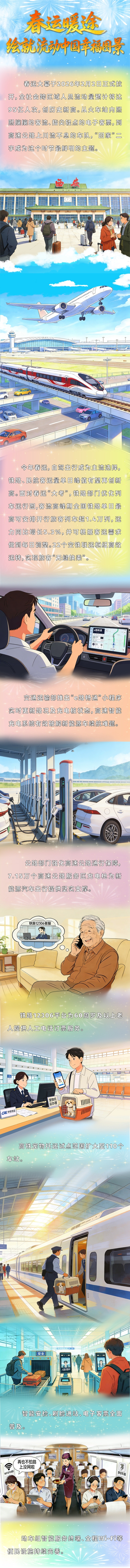 2026春运,全社会跨区域人员流动量预计将达95亿人次,再创历史新高。从火车站内熙熙攘攘的人群,到高速公路上川流不息的车队,“回家”二字成为最鲜明的主题。