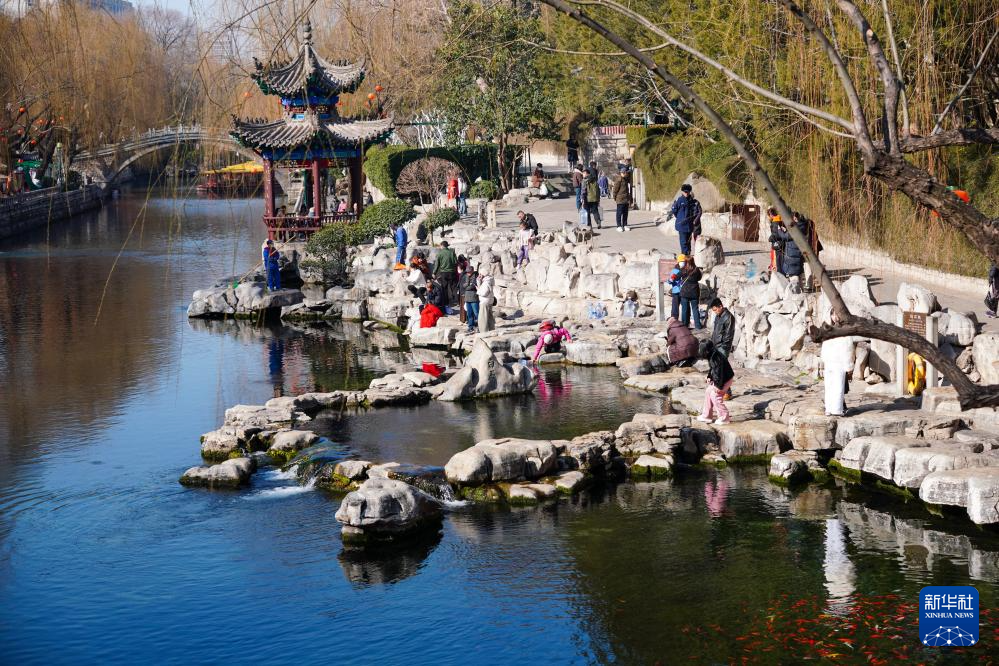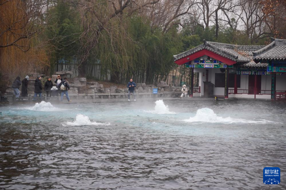 2月11日,人们在观赏济南白石泉。