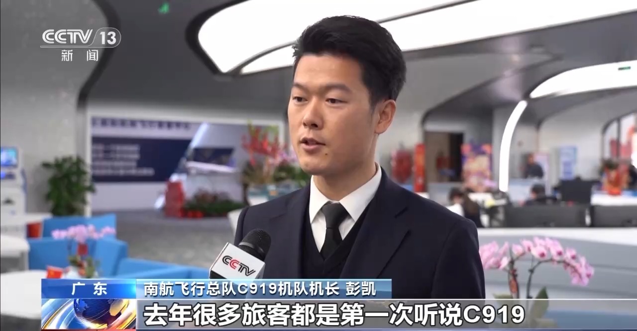 南航飞行总队C919机队机长彭凯:去年很多旅客都是第一次听说C919,今年可能有些不一样,很多旅客已经主动选乘去拍照打卡这个机型了。