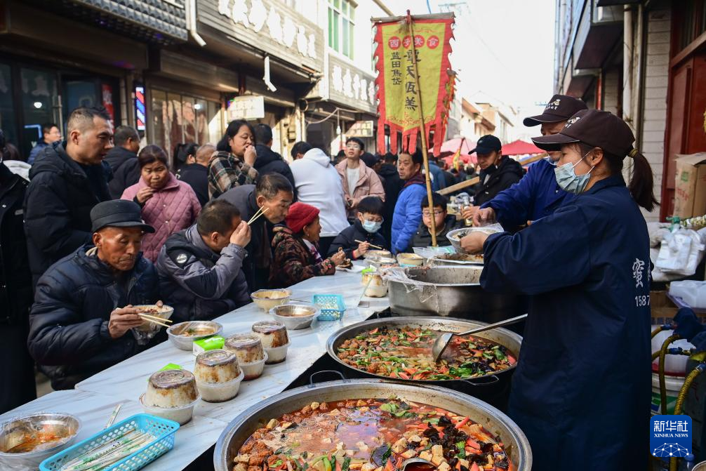 2月13日,游客在焦岱大集上品尝特色小吃。