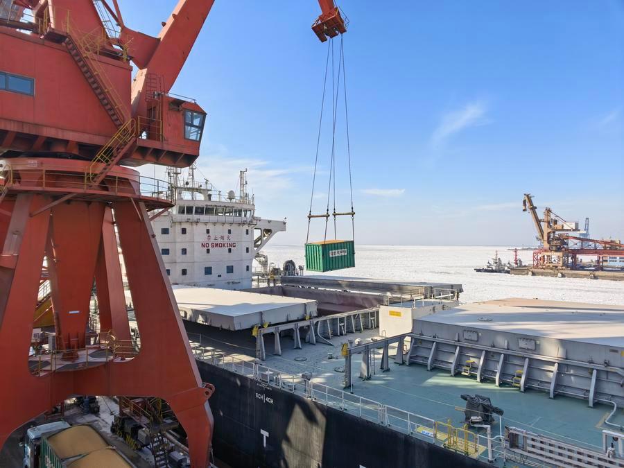 春节临近,“北粮南运”大通道依然繁忙。营口港粮食码头上,一辆辆从东北腹地驶来的货车排队装卸,一艘艘货船频繁靠离。为护航这条纵贯南北的“黄金通道”,当地相关部门开展破冰作业,并优化仓储与运转效率,将东北粮食源源不断送往南方。