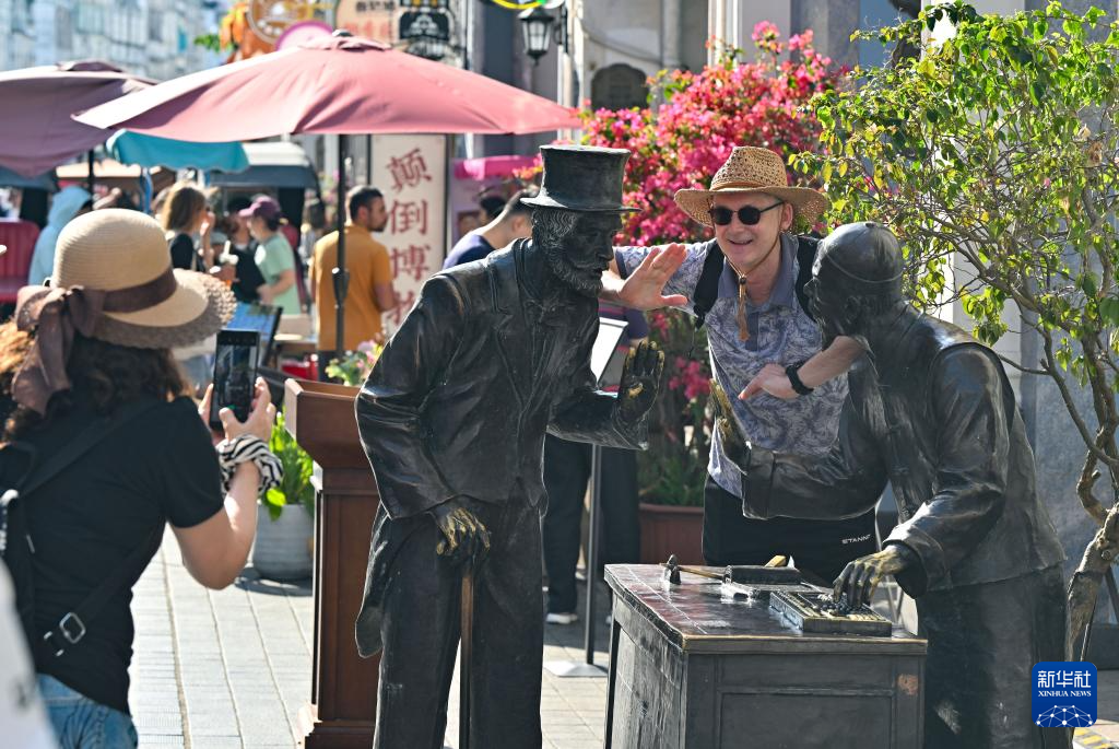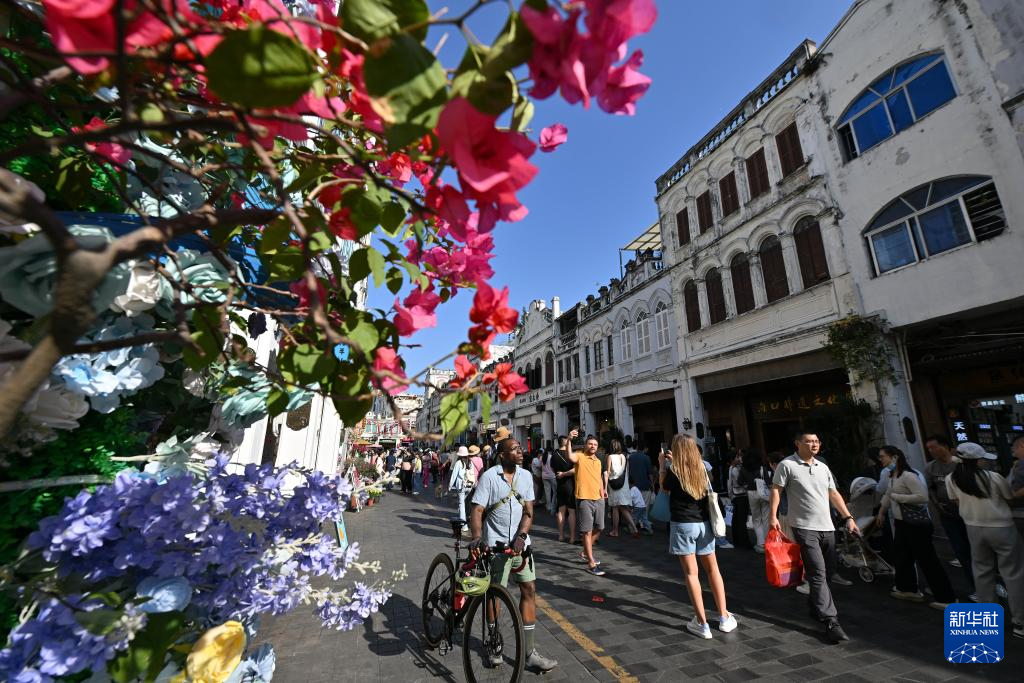春节假期首日,许多游客来到海口骑楼老街游玩,乐享假期。
