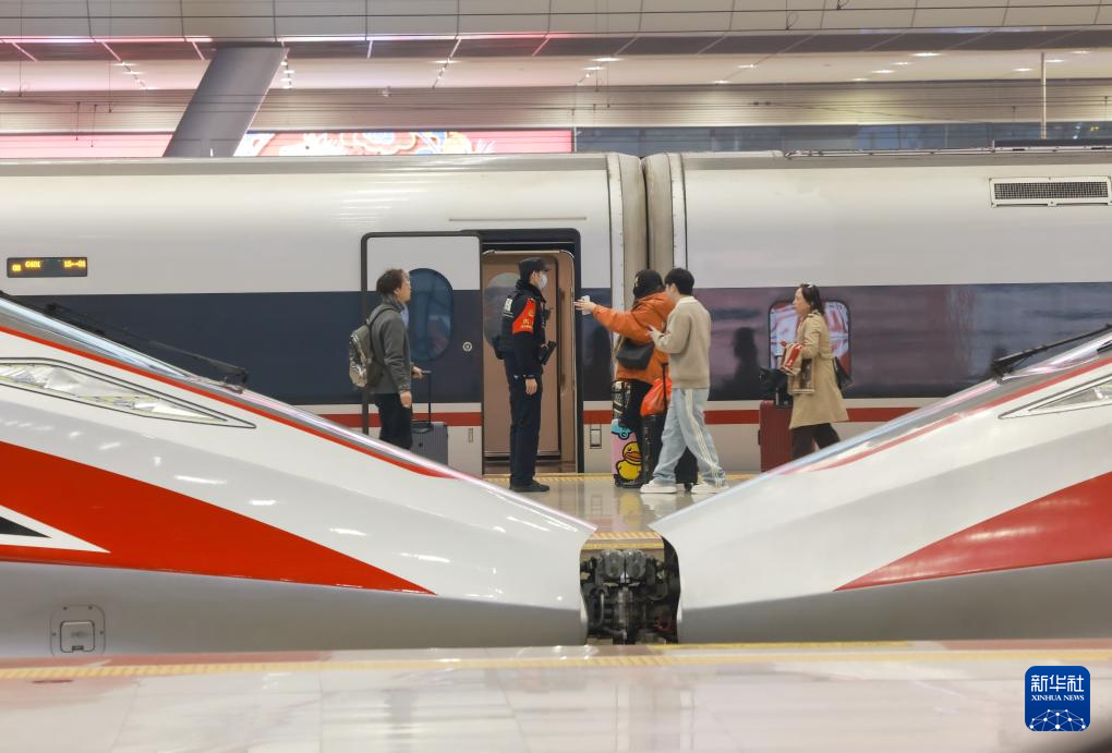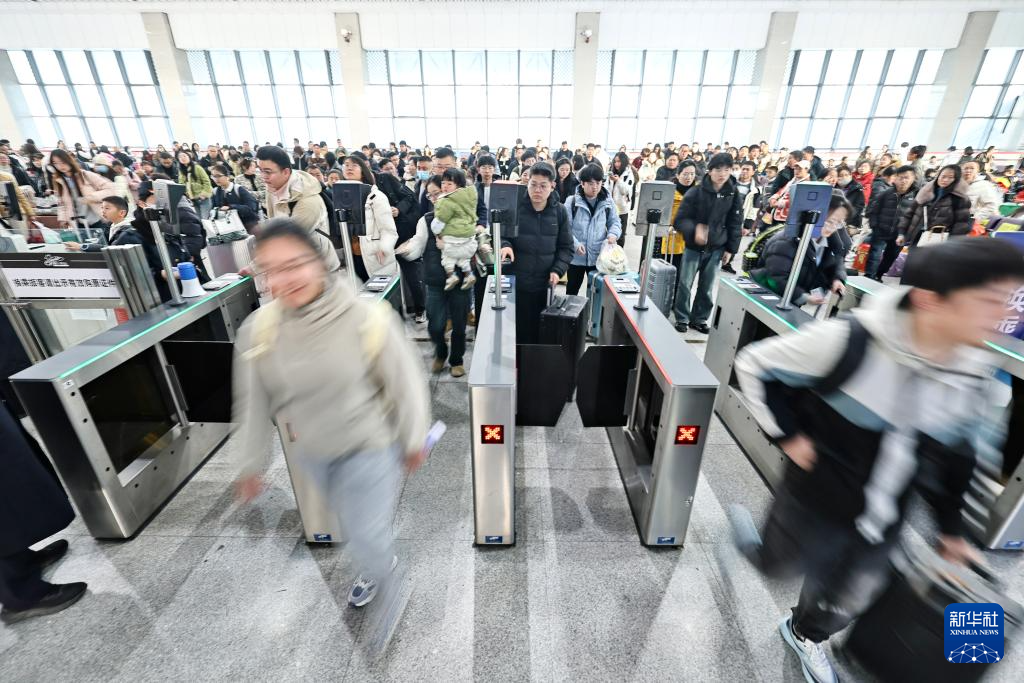 2月15日,旅客在湖北省武汉站乘车出行。