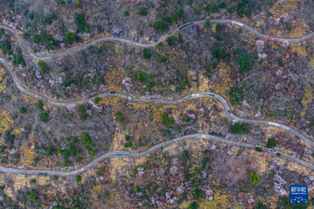 2月25日拍摄的漫山遍野盛开的野樱花(无人机照片)。