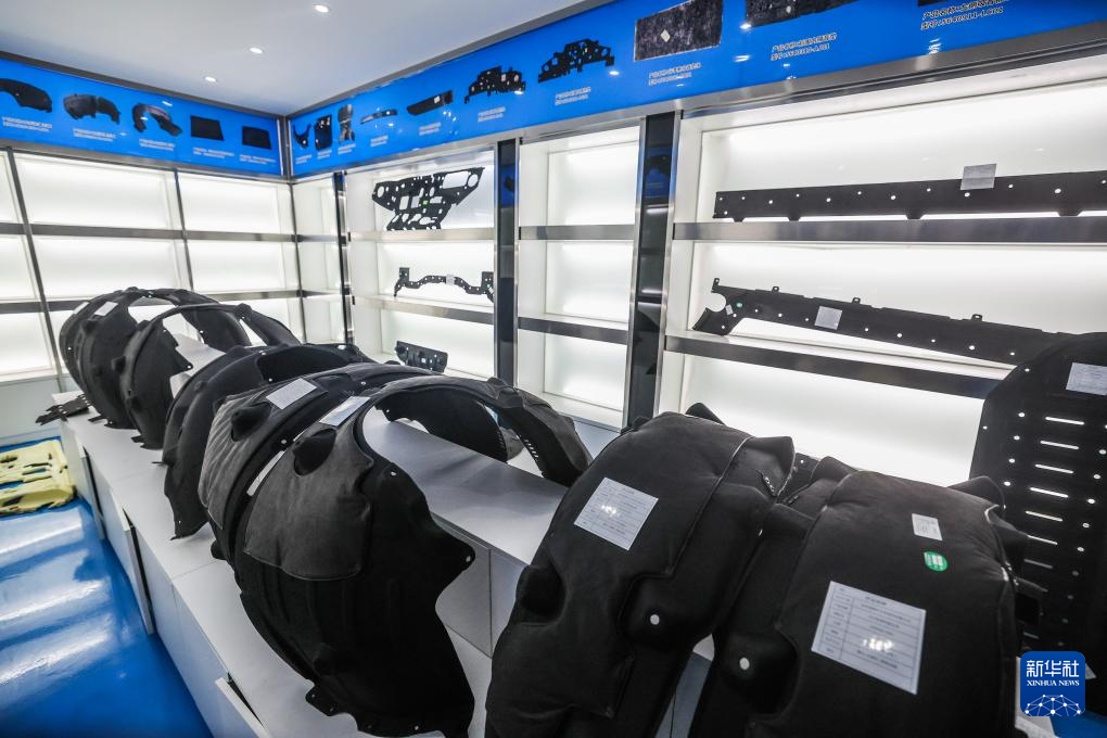 2月27日在位于金华市金东区的金华益辉汽车零部件有限公司展厅内拍摄的各类新能源汽车的衬板和饰板。