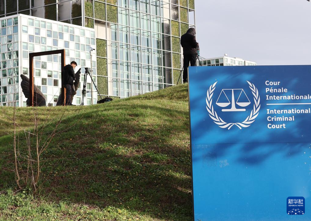 2月23日,在荷兰海牙,两名记者在国际刑事法院外拍摄。