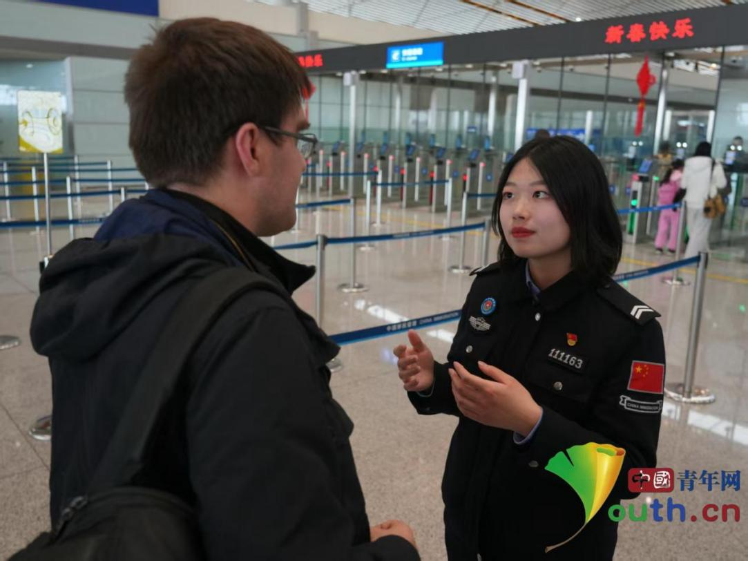 刘婷服务外国旅客。中国青年网通讯员 任申 摄