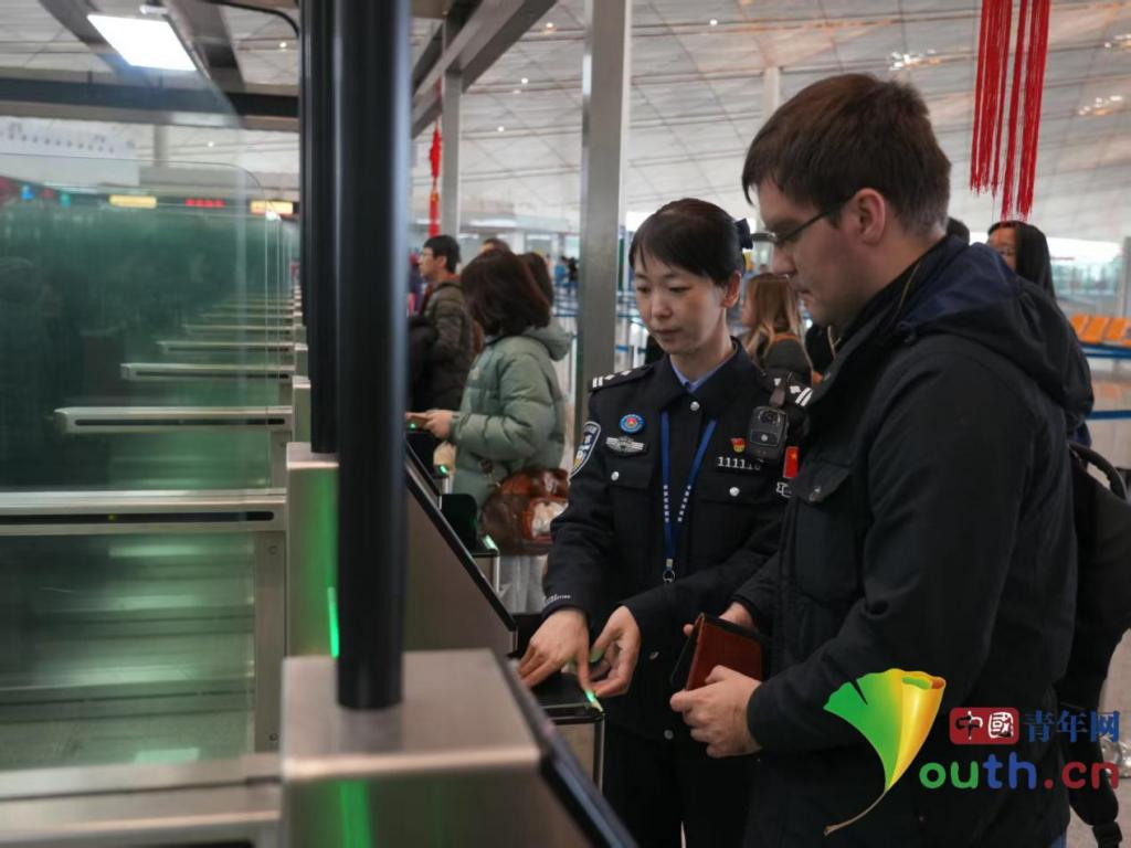何洋服务外国旅客。中国青年网通讯员 任申 摄