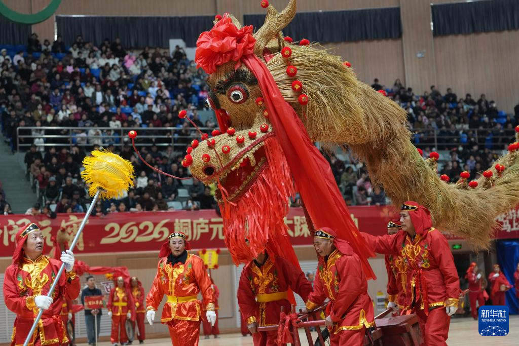 2月28日,桐庐县百江镇草龙在江南体育馆巡游表演。
