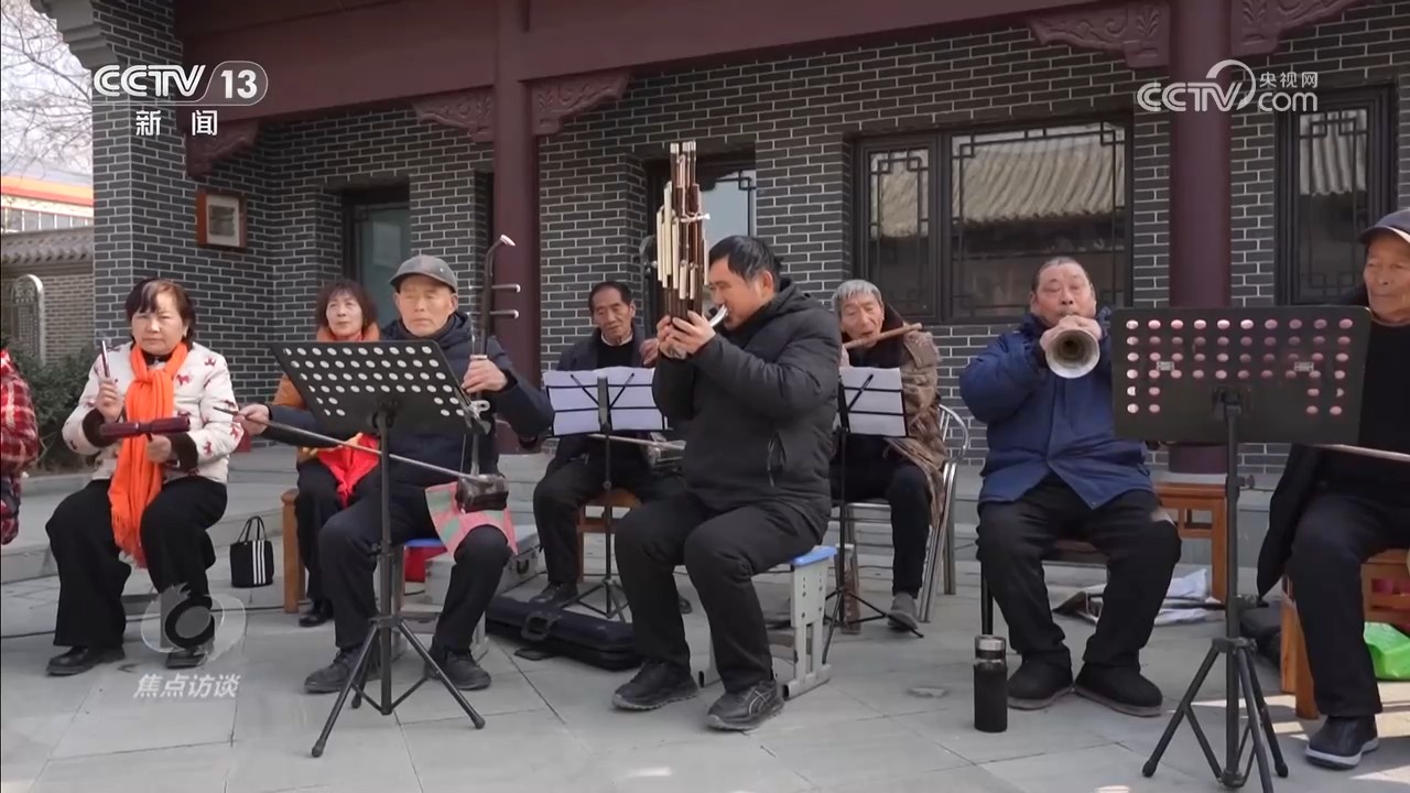 这边是锣鼓喧天的舞狮,另一边,文艺爱好者赵群波组织的豢龙村民乐队也在紧张筹备着。