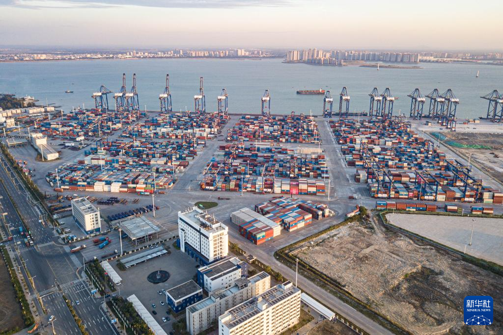 在海南洋浦经济开发区拍摄的洋浦港口岸(2025年11月21日摄,无人机照片)。其既是海南自贸港8个对外开放口岸之一,又是10个“二线口岸”之一。
