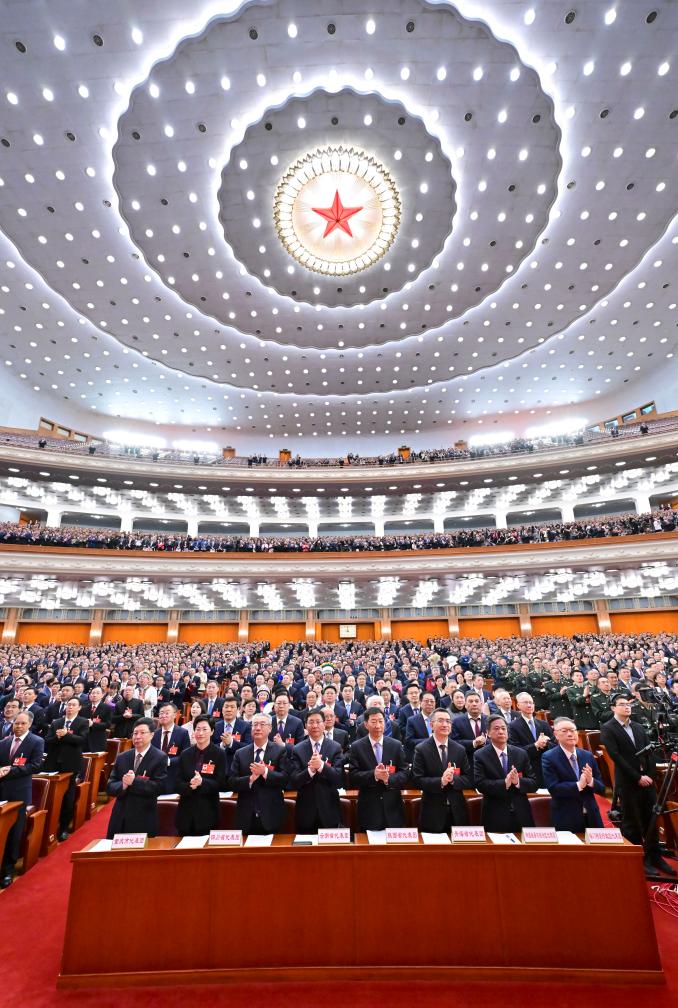 3月9日,十四届全国人大四次会议在北京人民大会堂举行第二次全体会议。这是全国政协委员列席会议。