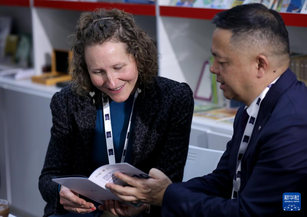 3月10日,人们在英国伦敦书展中国展区洽谈。