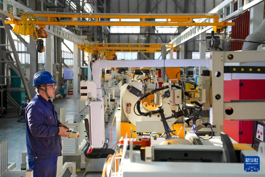 3月11日,技术人员在哈电集团哈尔滨电机厂有限责任公司控制设备事业部数字化车间调试生产设备。