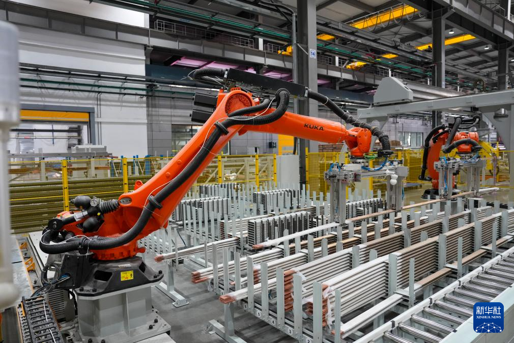 这是3月11日在哈电集团哈尔滨电机厂有限责任公司线圈分厂数字化车间拍摄的正在运行的生产设备。