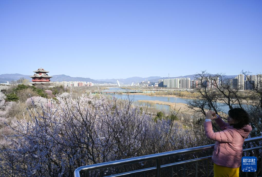 近日,北京园博园桃花谷山桃花次第绽放,吸引游客前来赏花踏青。