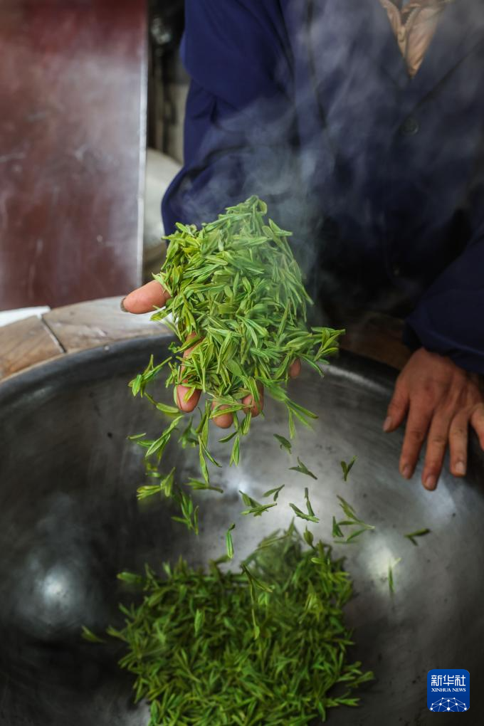 3月19日,梅家坞村的茶农周菊英手工炒制首批西湖龙井“明前茶”。新华社记者 徐昱 摄