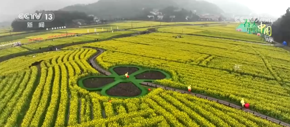 通过航拍镜头可以看到,万亩花海铺展在群山之间,与错落的村落交相辉映,美不胜收;再看近景,游客们漫步在花田小径,每一个画面都鲜活灵动。这里既有高空全景的开阔之美,又有近景漫步的细腻之韵,宛如一幅铺展在大地上的春日田园画卷。