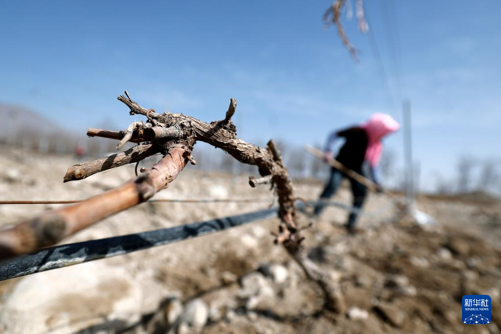 随着气温回暖,在宁夏贺兰山东麓的优质酿酒葡萄产区,数十万亩酿酒葡萄结束“冬眠”,迎来春季展藤。冬藏埋土、春季展藤,是我国北方一些葡萄产区独特的农耕措施,以避免冬季低温冻伤葡萄藤。宁夏贺兰山东麓位于北纬37度至39度,是我国最大的酿酒葡萄集中连片种植区和酒庄酒产区。