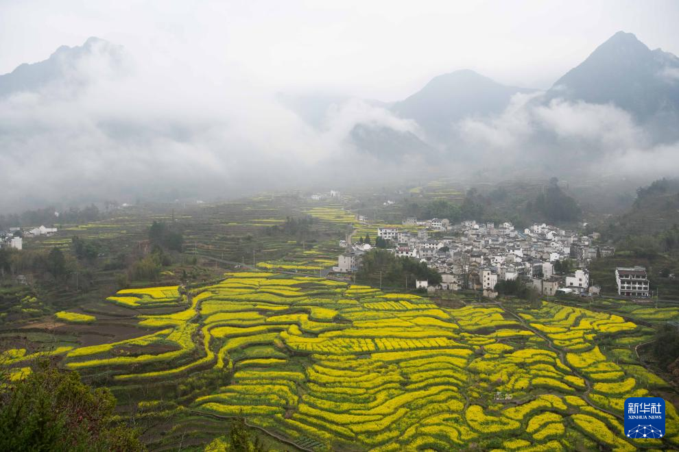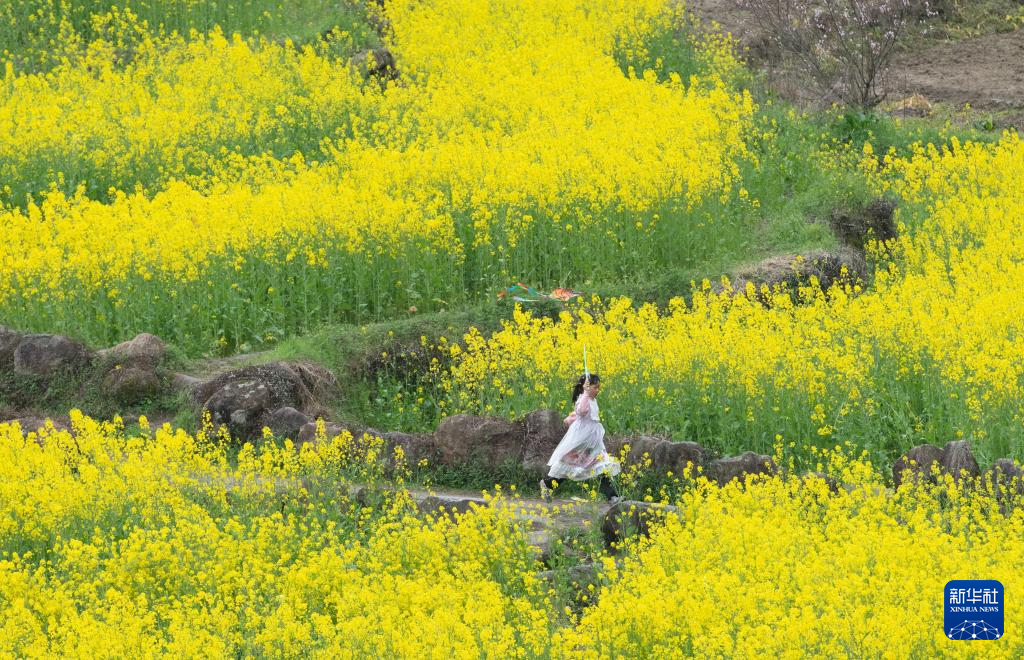 眼下,安徽省宣城市绩溪县家朋乡幸福村的油菜花田进入盛花期,大批游客来此踏青赏花。
