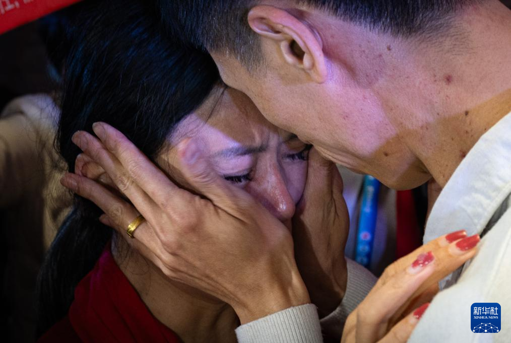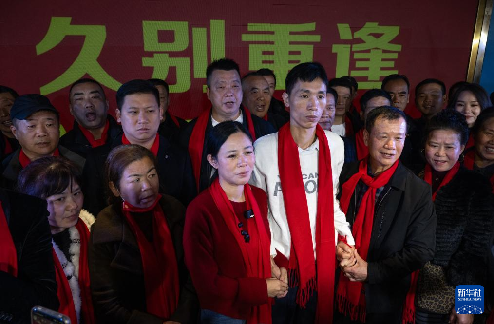 3月24日,弟弟回到湖北仙桃老家,李林铺红毯、挂气球,以隆重仪式迎接弟弟回家。仪式现场,姐弟相拥在一起,泪水夺眶而出。