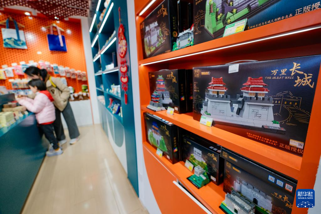 3月21日,游客在北京慕田峪长城景区的一家文创店选购商品。