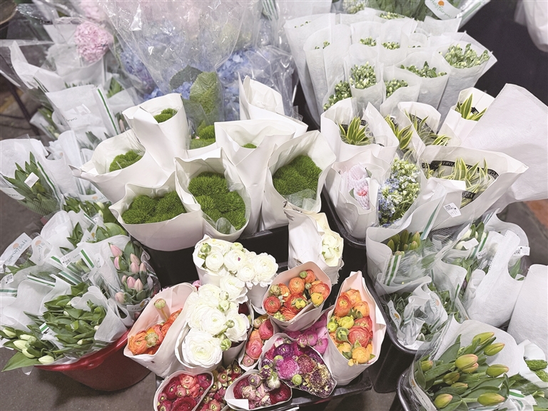 旦增旺单在这条街上卖了16年花,算是元老级人物。他一边给新到的郁金香剪根,一边和记者介绍,“以前买花就是过节送人,情人节、妇女节、母亲节,包装得越漂亮越好。现在不一样了,平时也买,给自己买。”