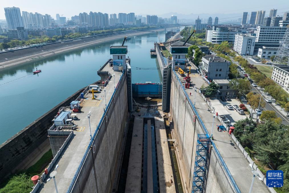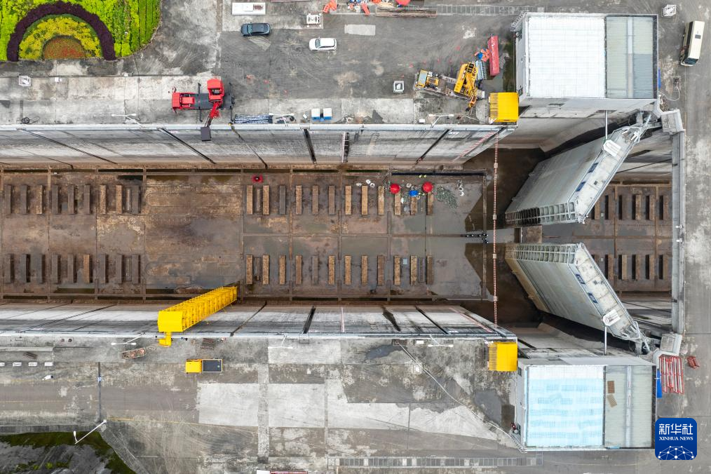 4月2日拍摄的三峡南线船闸停航检修现场(无人机照片)。