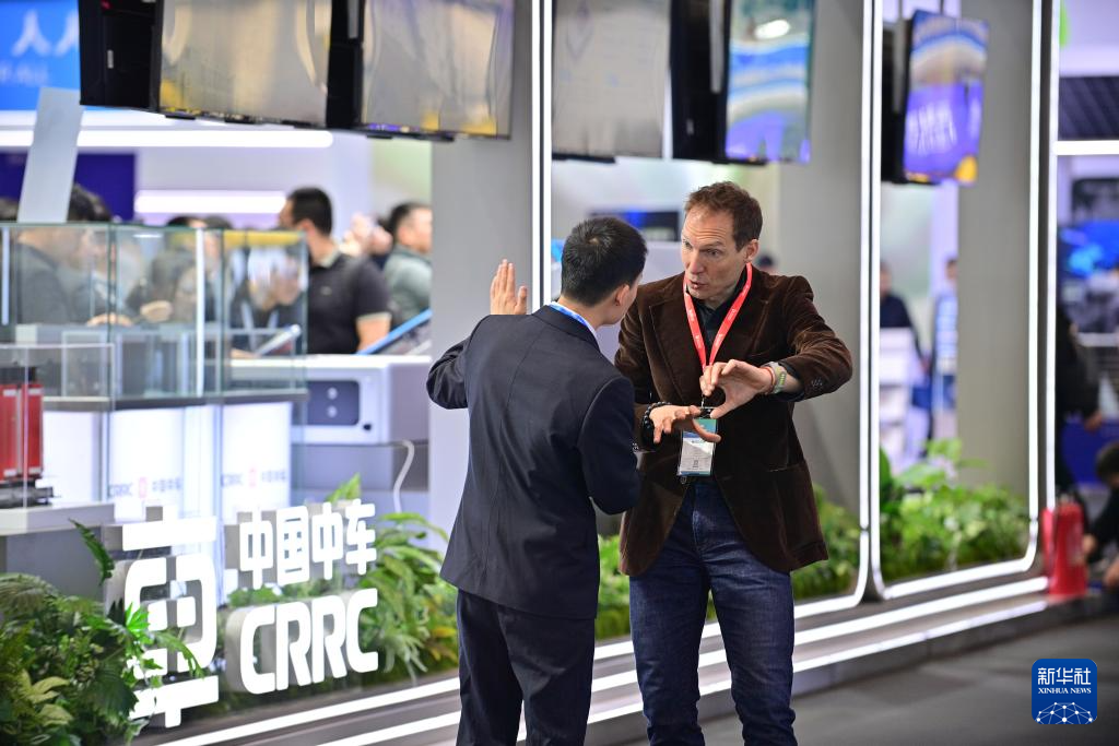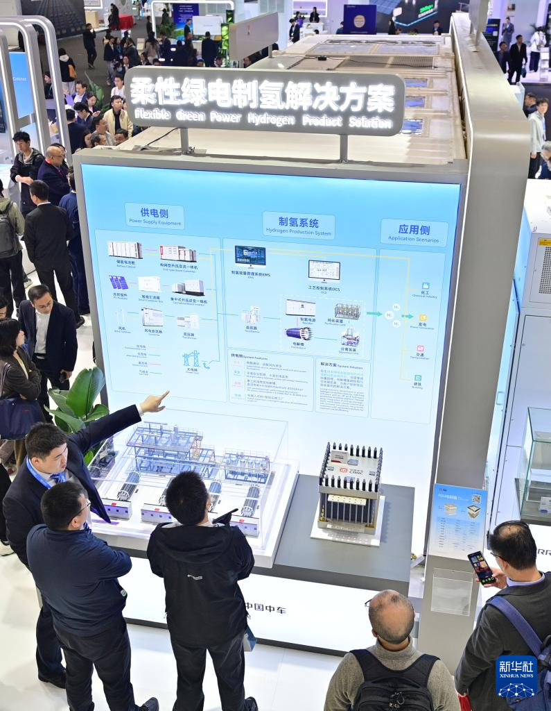 4月2日,参观者在第十四届储能国际峰会暨展览会上了解中国中车的柔性绿电制氢解决方案。