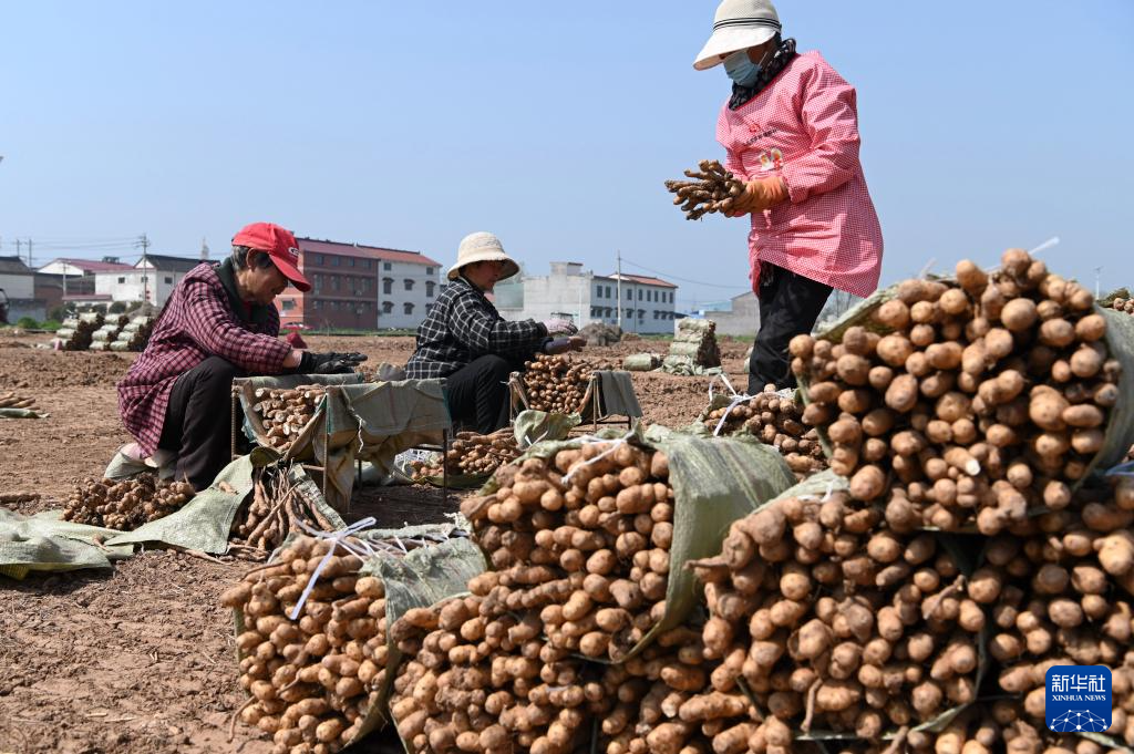 4月1日,农民在河南省沁阳市紫陵镇王村分选怀山药种。