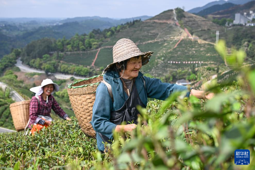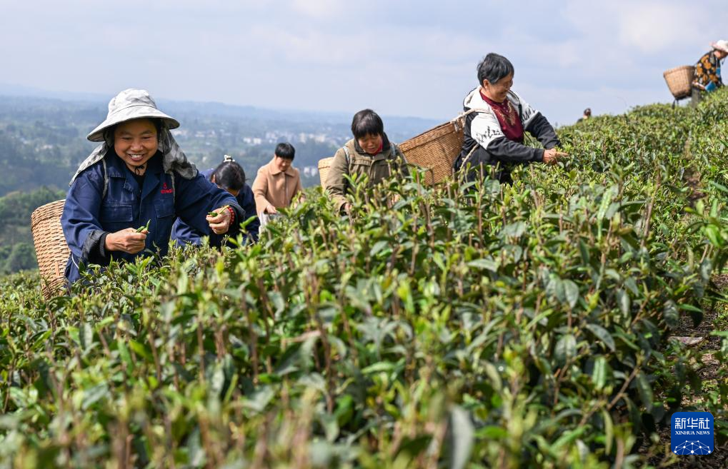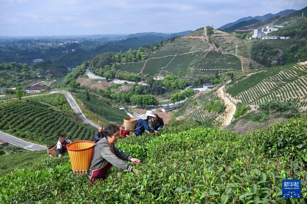 4月3日,重庆市永川区宝峰镇茶农在茶园里采摘茶叶。