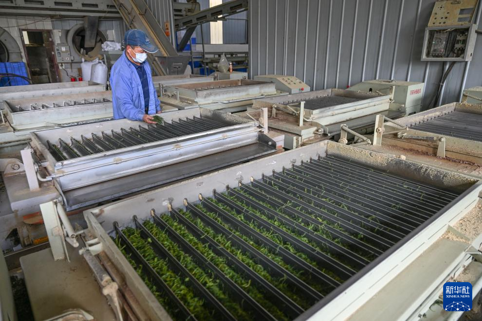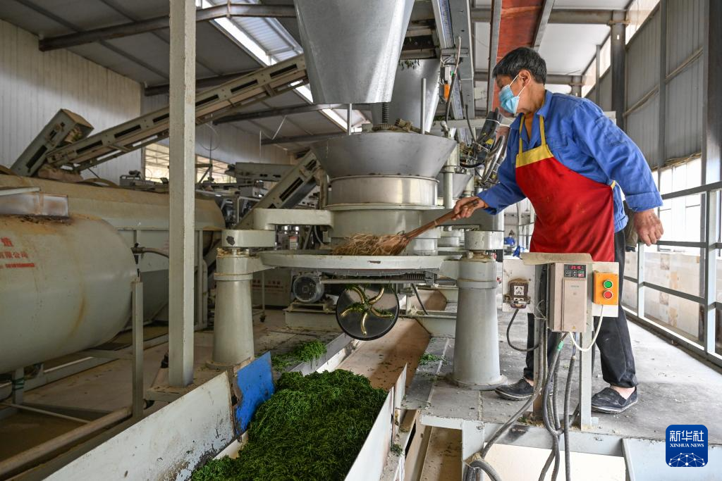 4月3日,重庆市永川区宝峰镇一家茶厂的工人在加工茶叶。