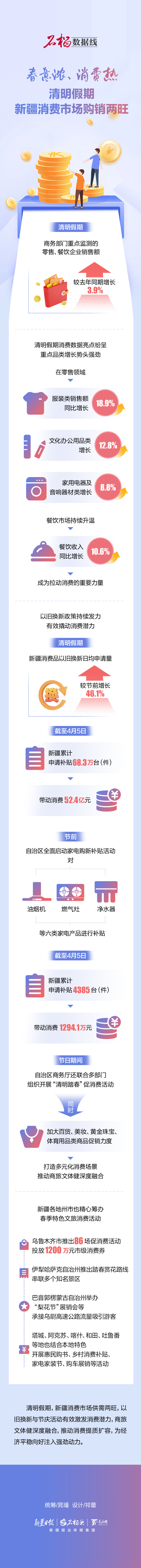 清明假期,新疆消费市场供需两旺,以旧换新与节庆活动有效激发消费潜力,商旅文体健深度融合,推动消费提质扩容,为经济平稳向好注入强劲动力。