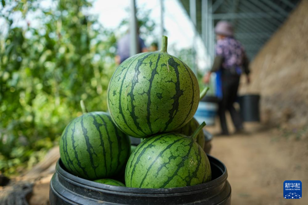 山东潍坊:小型西瓜成熟 瓜农收获忙
