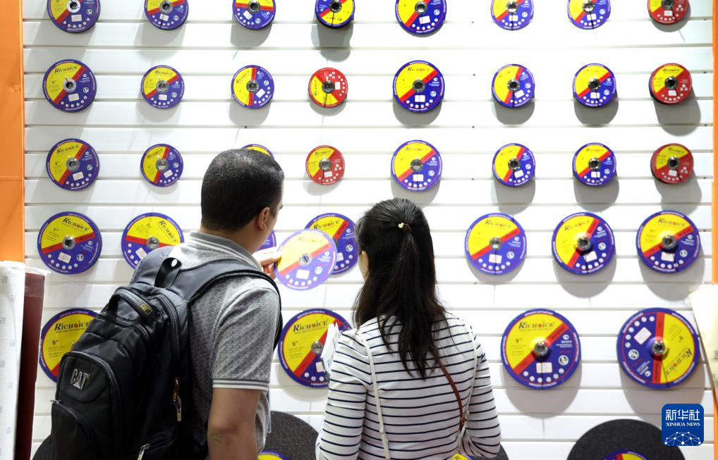 4月19日,采购商在广交会上参观选购磨砂轮。新华社记者 卢汉欣摄