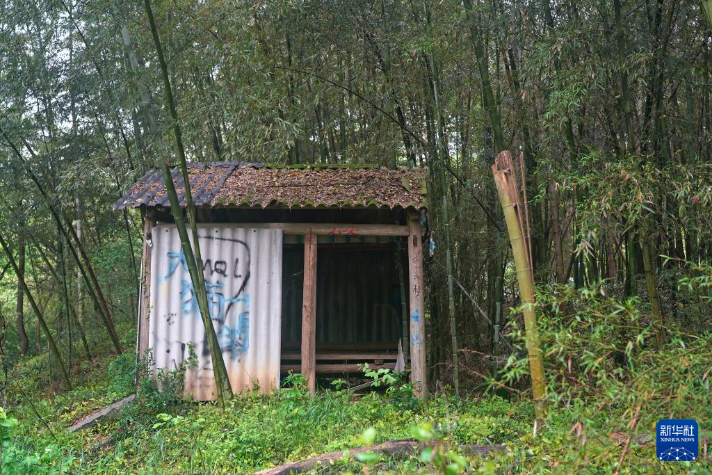 村民当年巡护守夜用的值班棚(4月9日摄)。