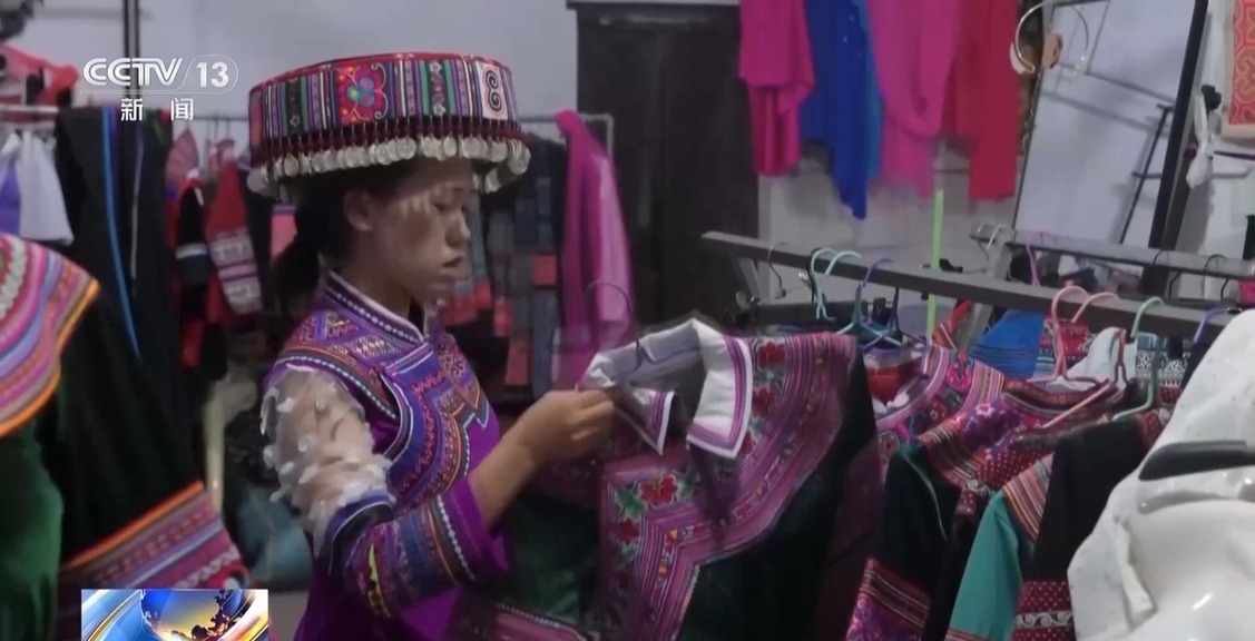 快递进村也激活了乡村产业。小坝子镇田湾村村民王斜英,常年从事苗族传统服饰缝制,畅通的村级快递,让她的手工艺品飞出了大山。