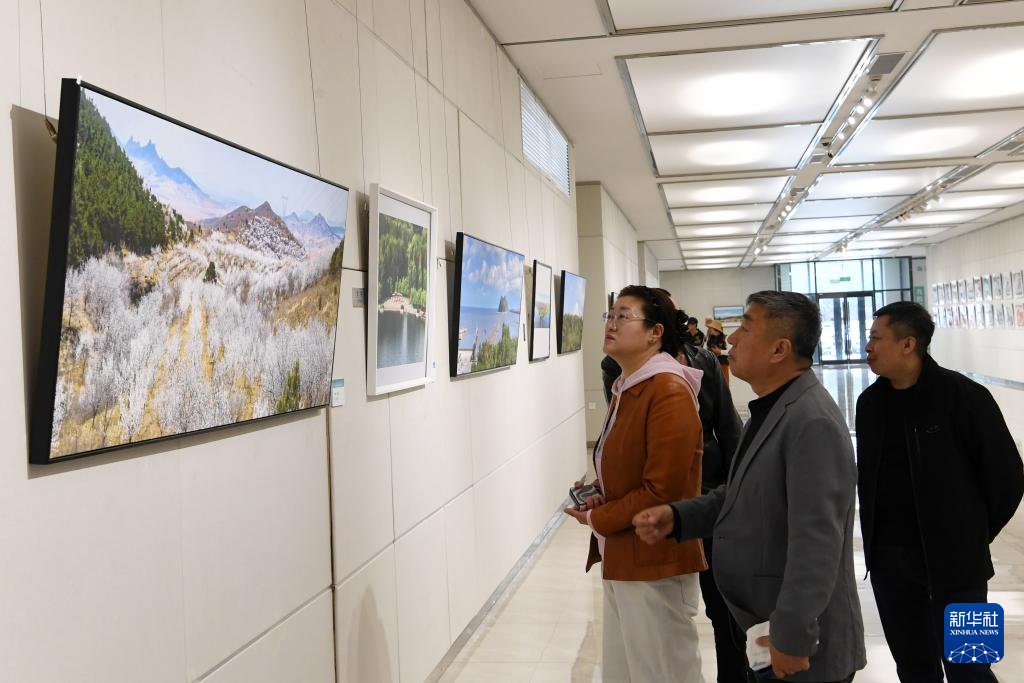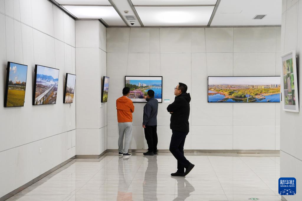 4月24日,在锦州文化艺术中心,参观者欣赏“美丽锦州·市民印象”生态主题作品展上展出的摄影作品。
