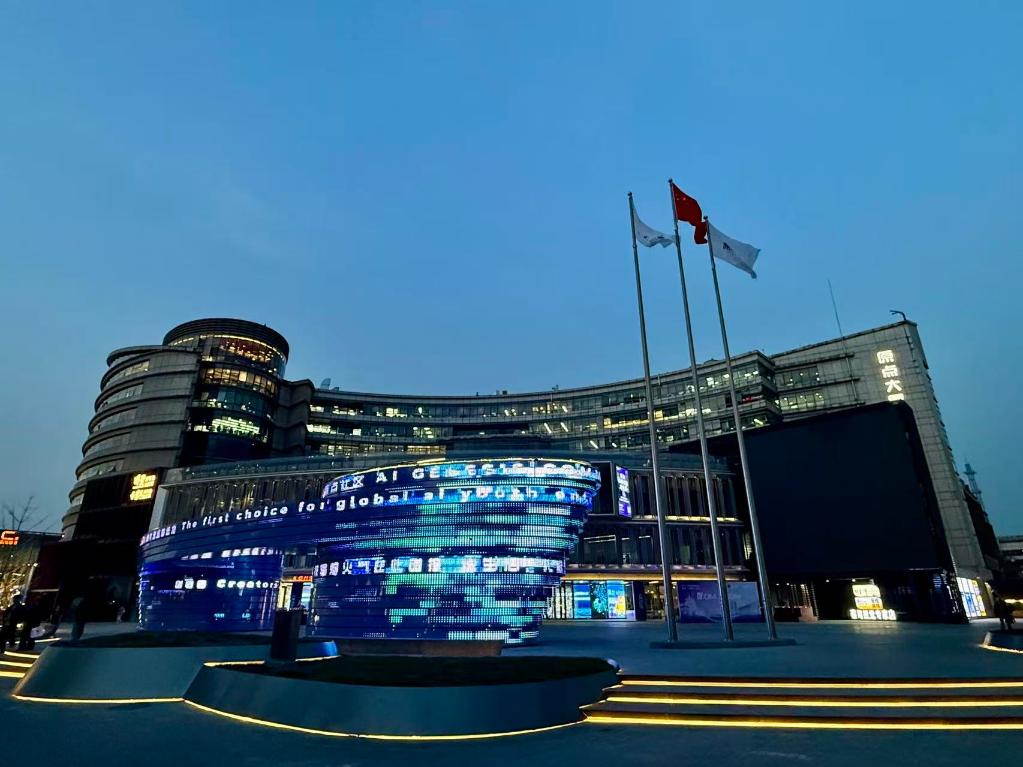 4月1日,夜幕下的“AI原点社区”依然灯火通明。新华社记者张骁 摄