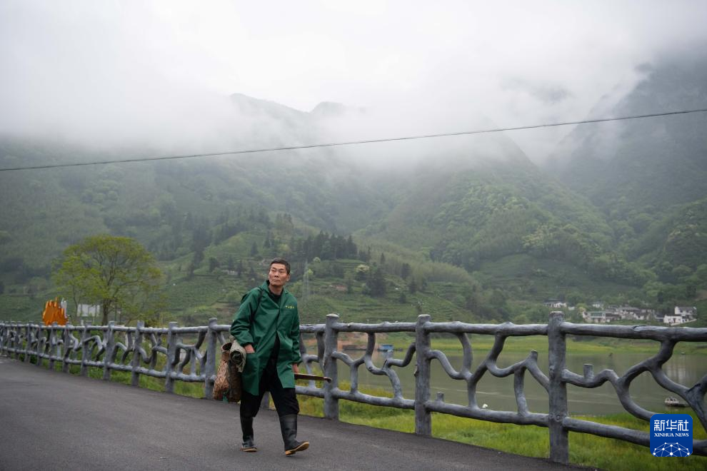 4月24日早晨,在黄山市黄山区新明乡猴坑村,茶农叶良金准备前往高山茶园采茶。