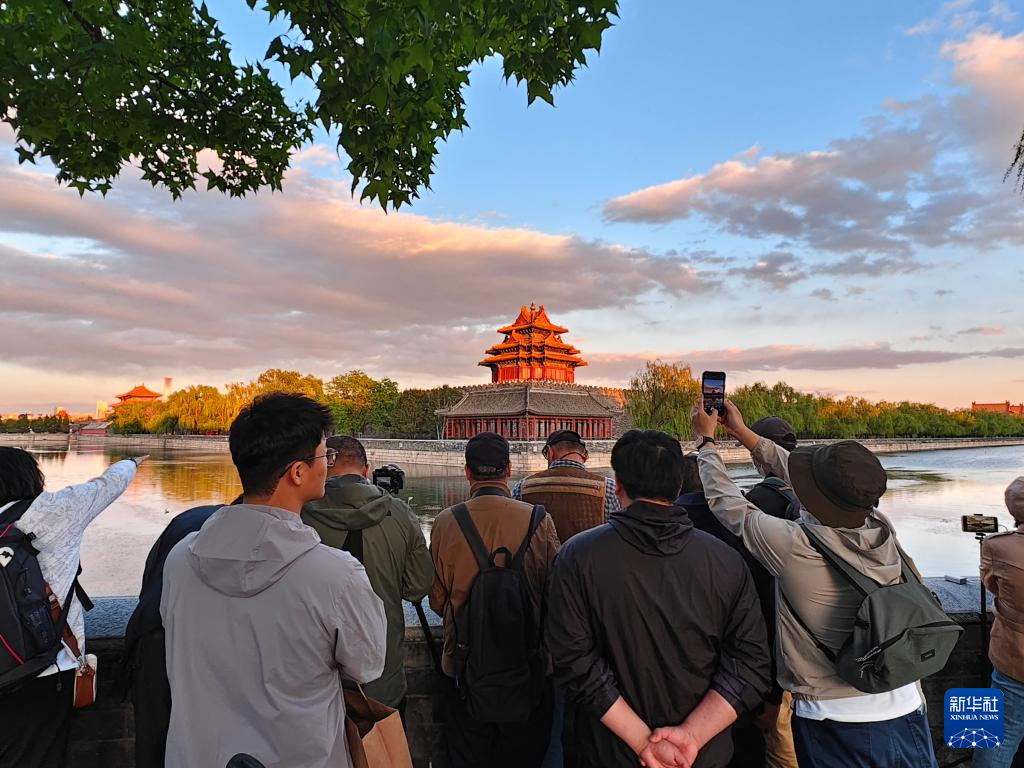 4月27日,游客欣赏故宫角楼(手机照片)。