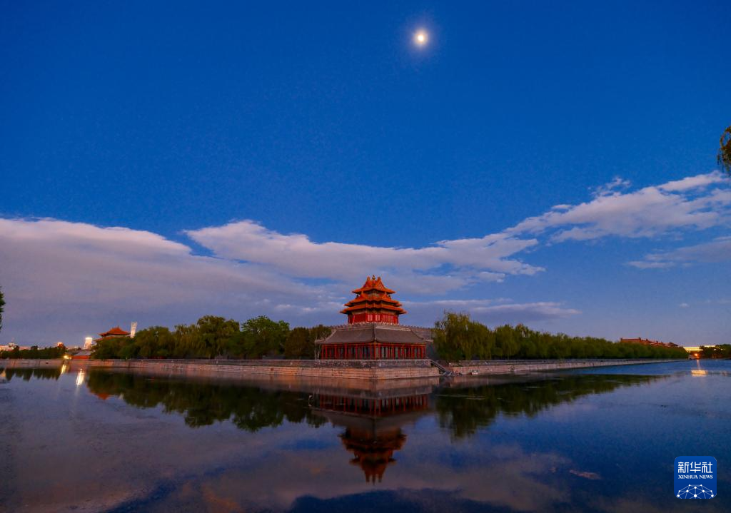 这是4月27日拍摄的暮色中的故宫角楼(手机照片)。