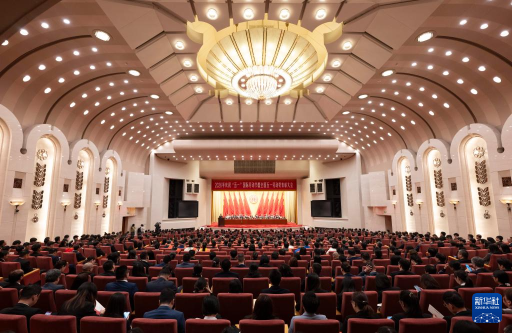 这是4月28日在北京人民大会堂拍摄的2026年庆祝“五一”国际劳动节暨全国五一劳动奖表彰大会。
