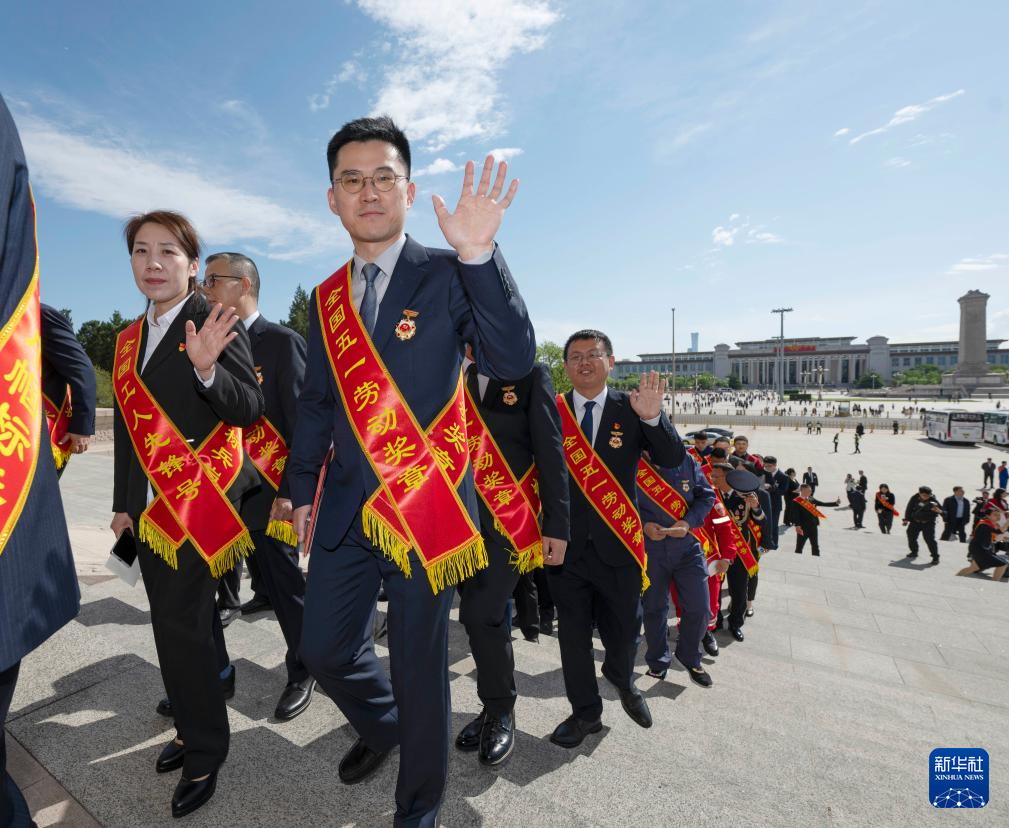 4月28日,荣获全国五一劳动奖章的部分个人代表在大会上合影。